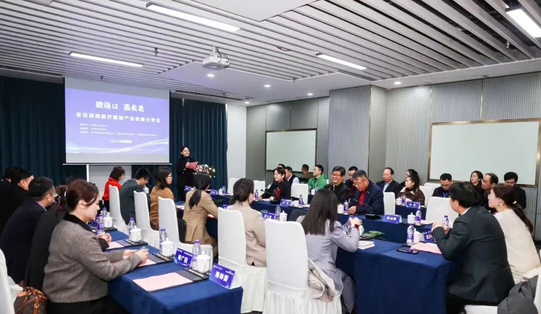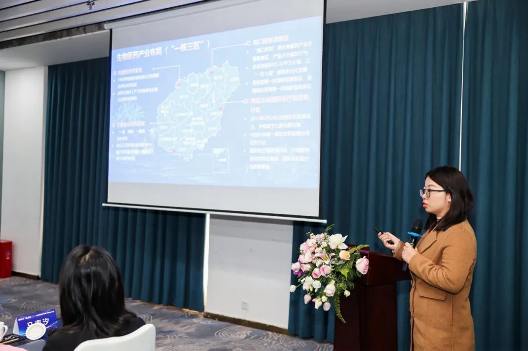 这里正在举行“瞰海口·赢未来”走进湖南医疗器械产业政策分享会。20多位来自湖南等地的生物医药领域企业家,饶有兴趣聆听着海南自由贸易港的利好政策介绍。