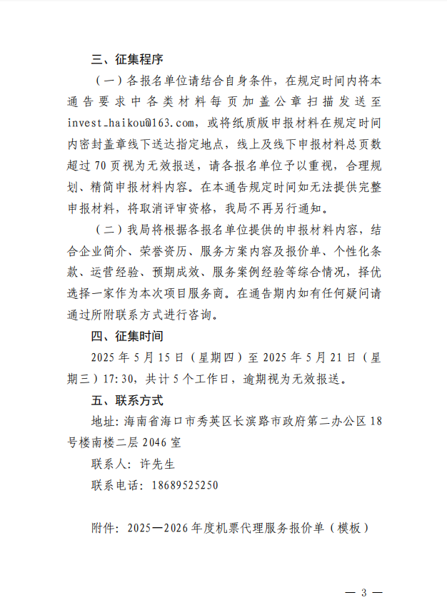 海口国际投资促进局关于公开征集2025—2026年度机票代理服务供应商的通告.pdf